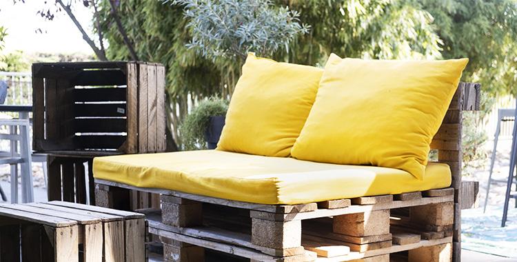 Reutilizar madeiras de demolição, pallets, caixas de feira e outros tipos de madeira também pode funcionar. Caixas podem ser organizadas como uma estante, como nichos, móveis de cabeceira, mesinhas... Pallets podem ajudar na criação de jardins verticais ou como sustentação para móveis mais baixos.