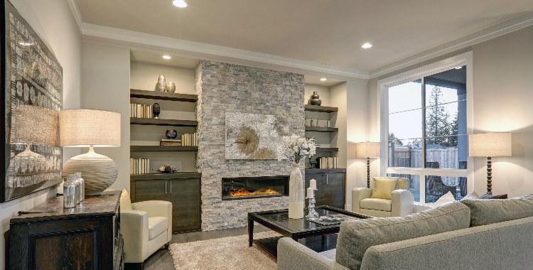Para criar um clima mais interessante dentro da sala de estar é interessante destacar alguns detalhes do espaço, seja uma lareira, uma parede texturizada ou um quadro na parede. Nesse caso, a iluminação de realce é o caminho para criar um ponto focal no detalhe que você quer destacar. Luzes embutidas e ajustáveis direcionadas para esses pontos, ou uma iluminação de gabinete são exemplos que funcionam muito bem.