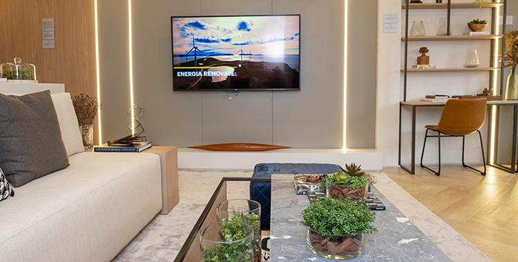 Mas, além da parte técnica, é importante que a escolha do tamanho da TV seja feita considerando o ambiente e a distância até os assentos, para que a experiência seja confortável e saudável. Geralmente, a distância de exibição recomendada para assistir uma TV 4k, por exemplo, é de 2,5 metros até o sofá. Já a posição do aparelho na parede deve ser na altura certa para que os olhos alcancem o meio da tela, sem precisar elevar ou abaixar a cabeça para visualizá-la.