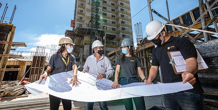 A incorporadora é responsável pelo desenvolvimento e administração do projeto e a construtora, por sua vez, pela execução da obra.