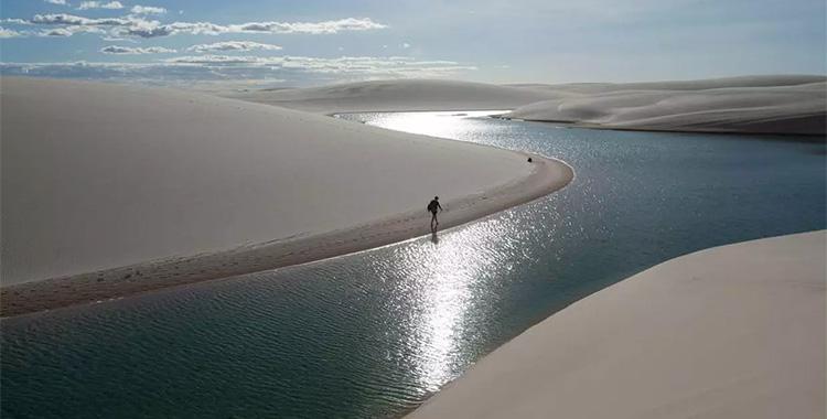 O Parque Nacional dos Lençóis Maranhenses tem de tudo. Dunas de areias brancas deslizando por lagos cristalinos, um rio negro e a floresta densa e exuberante. Sua paisagem única muda com as estações à medida que as lagoas se enchem com as águas da chuva.